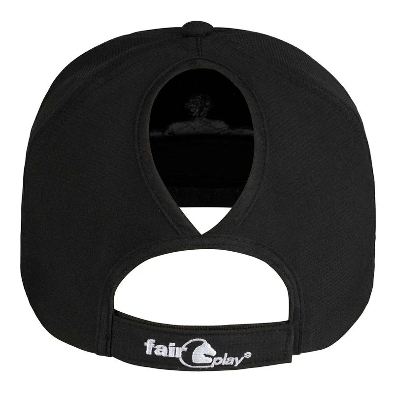 The Fair Play East Baseball Cap features a large #beFairPlay logo on the front. The back has a touchtape closure and a ponytail hole.