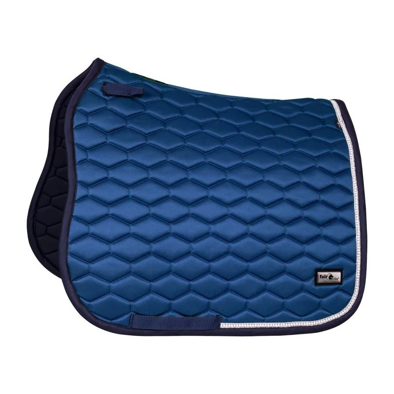 The Fair Play Hexagon Pearl has Dressage shape with a slightly cut back wither. It features a high whither contour topline and is lined with quick drying mesh for your horses comfort. The hexagon quilting has a unique look and it is finished with double decorative trim and pearl tape.