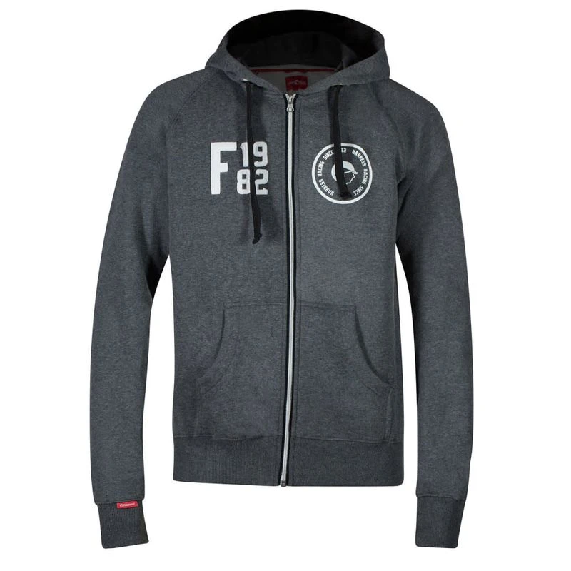 Sporty, cozy Finntack Pro College sweatshirt that includes a zipper front and lined hood.