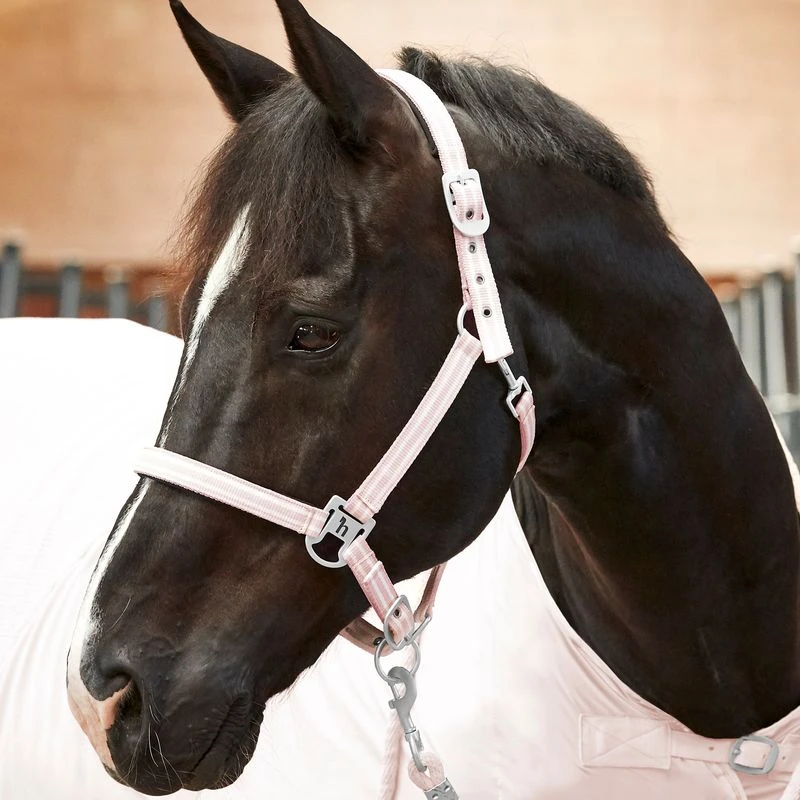 The Horze Bari halter is made from striped webbing material, and softly lined with neoprene at neck and nose. Adjustable buckles ensure the perfect fit, and the snap hook closes safely. The Bari lead is made from braided rope that is easy to hold, and equipped with a strong snap hook.