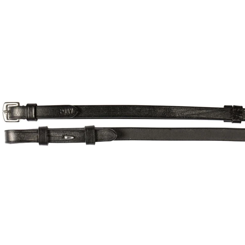 These plain reins are accented with additional leather stops to prevent slipping. and feature classic hook stud closures. A narrow 4/8″ width makes these reins a perfect choice for both snaffle bridles and for full bridles. The inclusion of rein stops also makes these reins a great choice for beginners as the stops make it easy to tell if the reins are being held evenly.