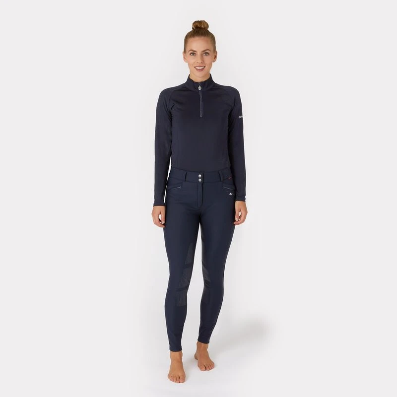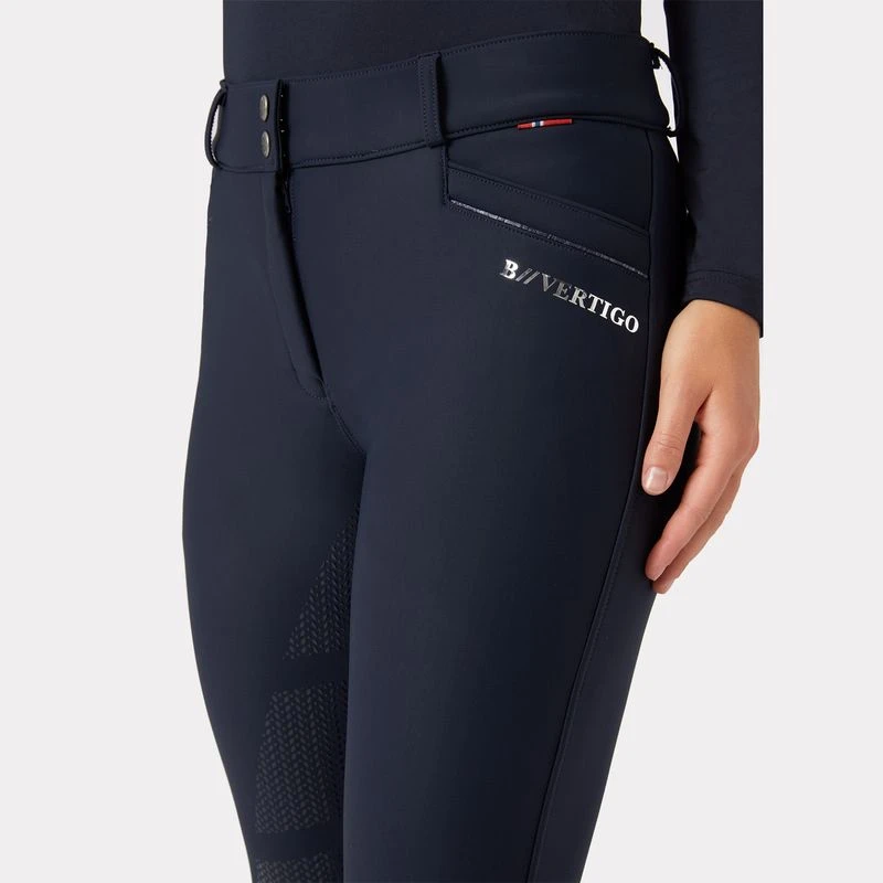 The B Vertigo Patricia thermo breeches combine all functions that you need for comfortable riding: Thermo material keeps you warm while also being breathable, water repellent and quick-drying. 4-way stretch makes them super comfortable. UV protection is effective on sunny winter days. Shiny piping along pockets and belt loops adds definition.