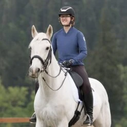 Stylish and cozy, the Radiant Pullover brings a classic look all season long! Featuring the new radiant, double-brushed, heather interlock knit that provides light compression for extra comfort. Its collar and thumbholes provide warmth with a classic look you cant beat, and an elliptical hem is the finishing touch that provides full coverage in the saddle.