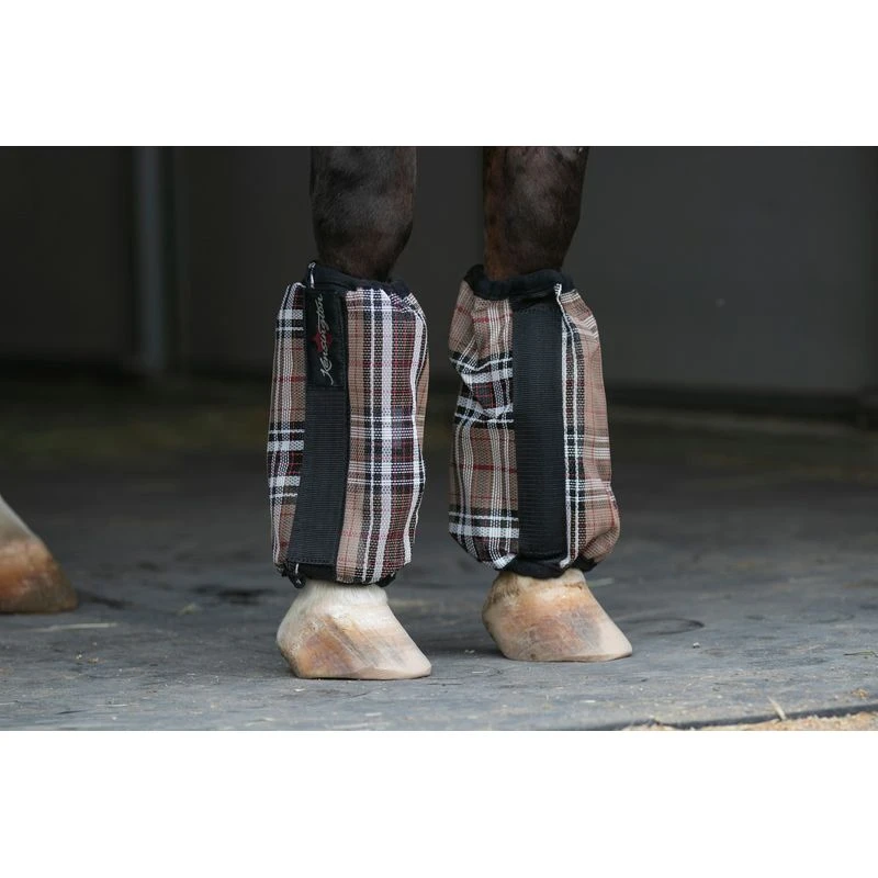 Kensingtons Protective Bubble Fly Boots feature a long hook and loop closure that runs vertically down the front of the boot and a light fleece trim for extra comfort around the top and bottom. Made with Textilene, these boots prevent injury from stomping by keeping flies from biting the horses legs. Can also protect your standing wraps from horses that like to pull at bandages. Sold in a set of 4.