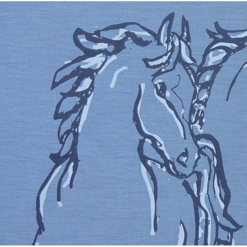 Three dancing horses, exclusive art from Rebecca Raubacher of Animals to Wear, grace this super soft, technical tee that stretches, wicks, and breathes for casual comfort in the saddle or beyond.