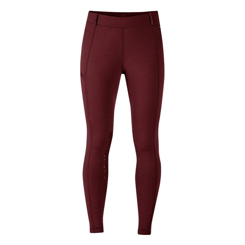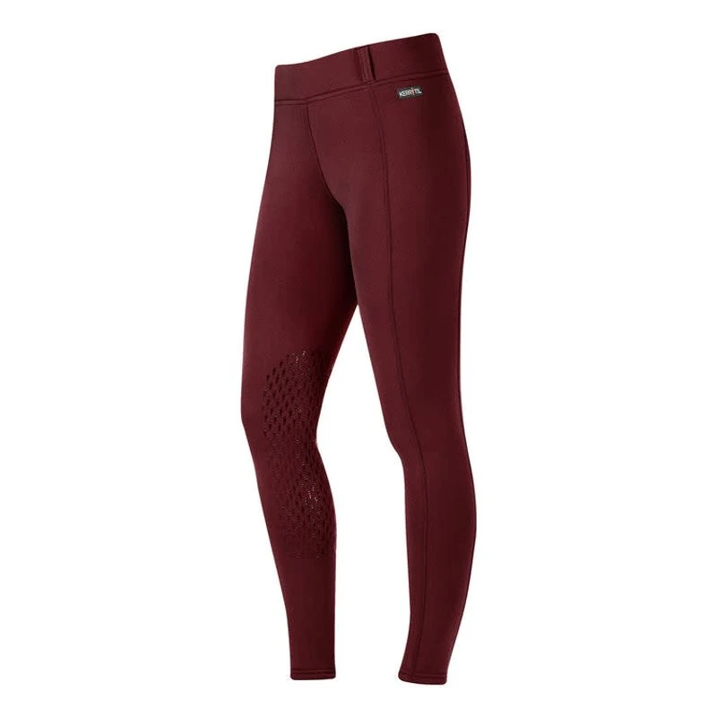 Ideal insulators for frosty winter rides and barn chores, the brushed fleece Polartec Power Stretch interior of these cold weather tights provides snuggly warmth while the matte exterior sheds hay, shavings, and horsehair. Kerrit Sticks_ Silicone knee patches add security without restriction for comfy performance. Sporty waistband in a Klassic rise with belt loops softly conforms while the zip pocket holds easy access treats.