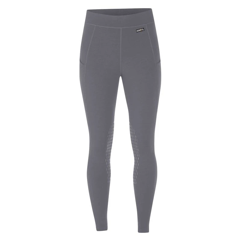 The quick-drying, breathable, and moisture-wicking wool is blended with just enough spandex for excellent shape retention and a four-way stretch fit. Kerrit Sticks_ Silicone knee patches, quick-access side pockets, and slimming flatlock seams make this flattering and functional tight an easy add to any equestrian wardrobe.
