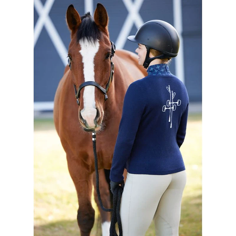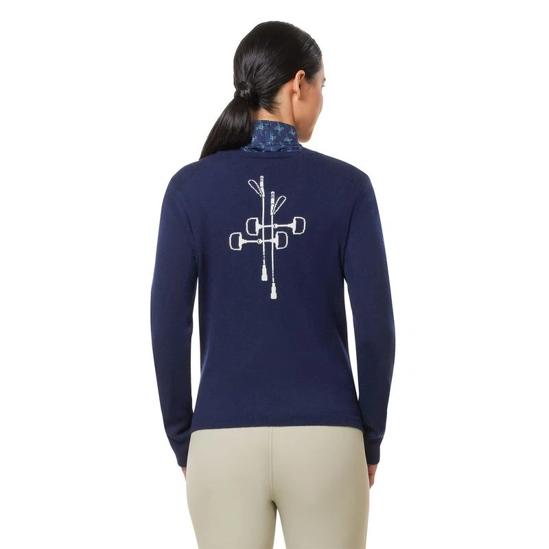 This stylish twist on a classic sweater delivers mid-weight warmth in a flattering, relaxed feminine cut with an eye-catching Crop N Bit design on the back proclaiming your equestrian allegiance.