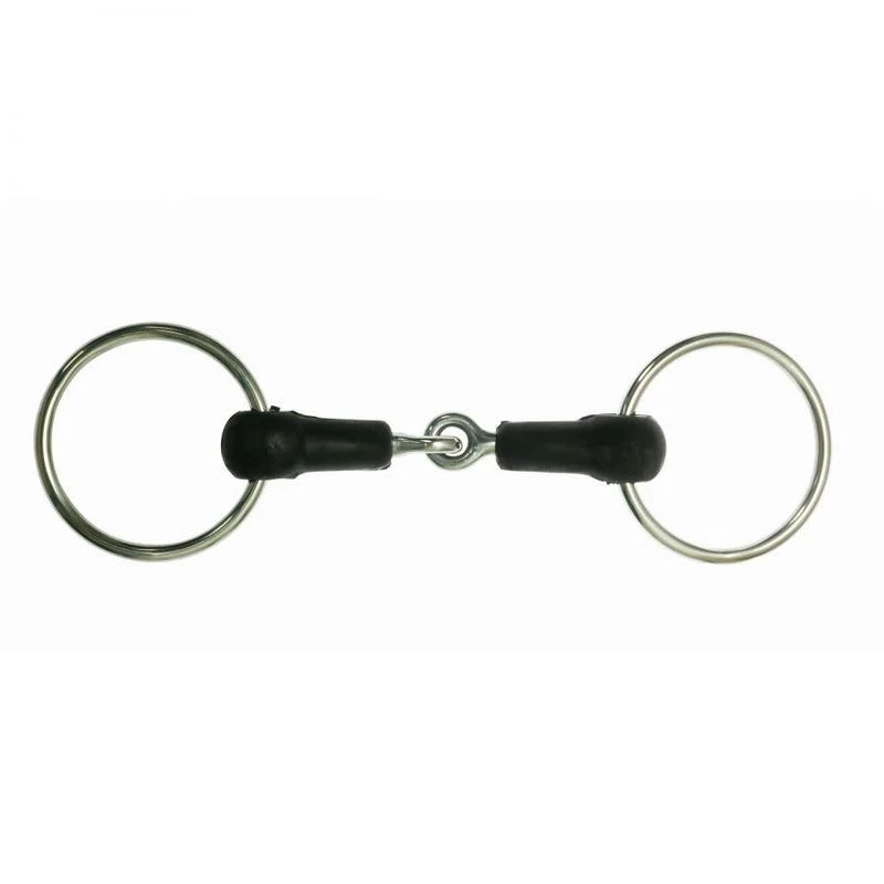 The thicker mouthpiece is softer on the corners and the bars of the mouth. Pressure created by the reins is spread over a larger surface area. The hard rubber mouthpiece offers a warmer and softer option, creating a much milder bit. The single joint creates a nutcracker action which puts pressure on the tongue, the roof of the mouth and the bars of the mouth.