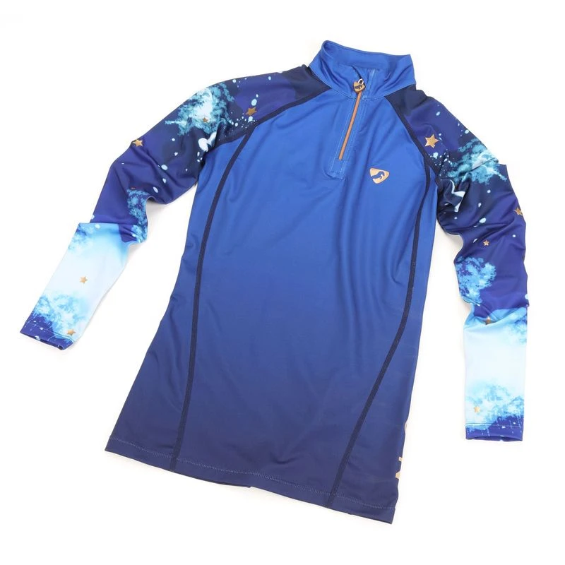 Designed to coordinate with the Hyde Park Hat Cover and Breeches. Style details include: quick dry stretch fabric, zip neck, flatlock seams, decorative prints, and Aubrion branding.